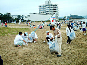 西の浜、東の浜を中心にして 多くの市民の方々と一緒に参加しています。 |